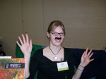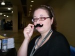 Armed with Prairie Margins issues and mustaches, editors and staff members sat at the table in the Book Fair.
